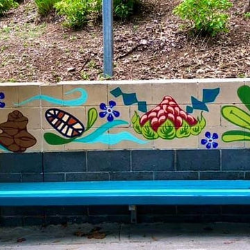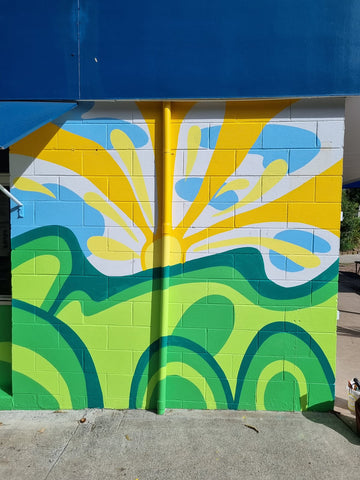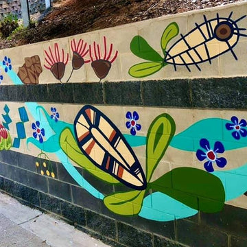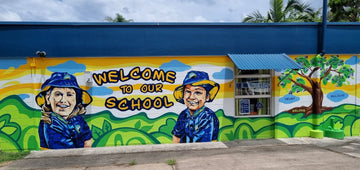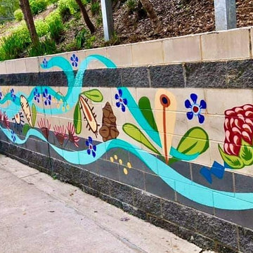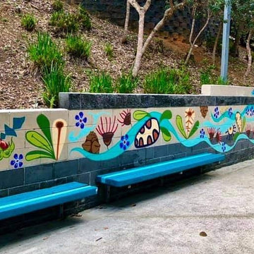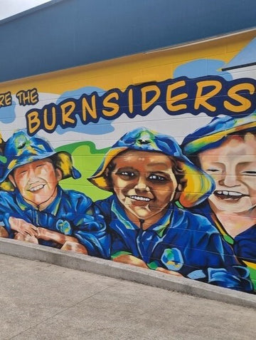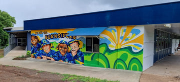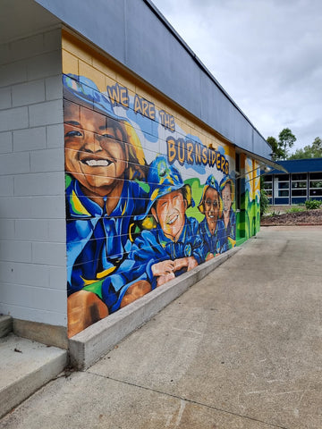 Always a privilege and a pleasure to bring some colour into the school ground. Burnside is situated in a beautiful green space of Nambour on the Sunshine Coast. It is quite a large school already adorned with some beautiful murals. I was given the opportunity to come up with something that embodied 'We are the burnsiders' and represented the school as best as possible. Something fun and eye catching as you entered the school. Very pleased with the overall outcome as were the school community. Thank you again to Lisa for trusting me with this great project.