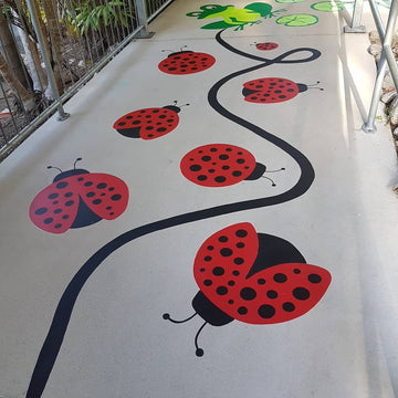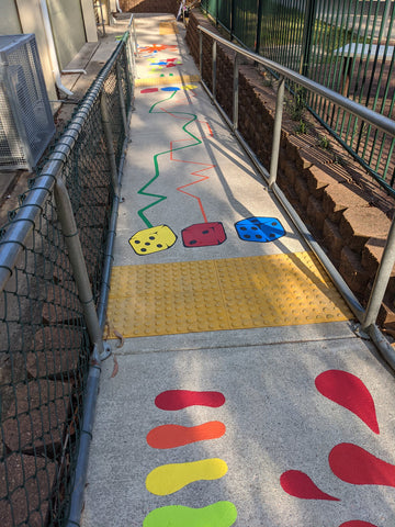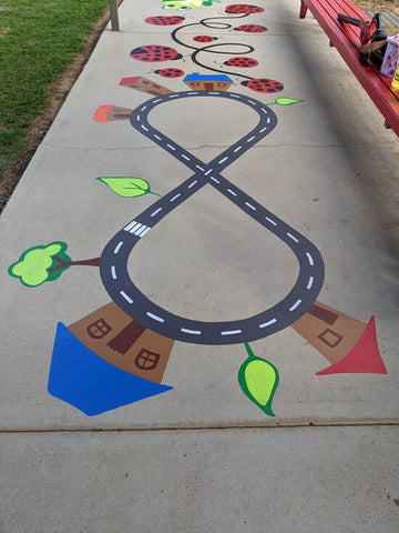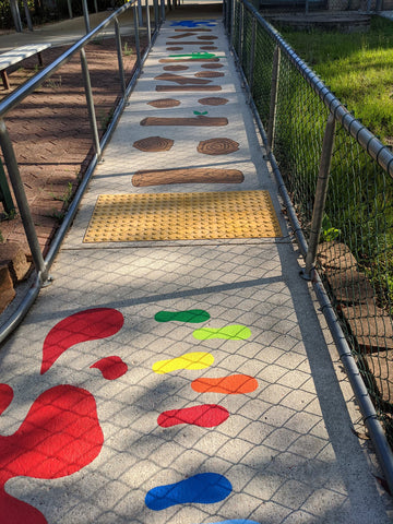 Every idea needs planning. I am happy to discuss ideas, future planning, complete quotes, and work with industry budgets to achieve desired outcomes. Some spaces are often used daily so need to be constructed when not in use or sectioned off for the duration of painting. I give the completed pathway a few days of curing time before being used to guarantee longevity. Each project is different, the bigger the space the longer it will take. My process is an accumulation of layered colours. The impact and durability is only possible when the paint is substantially covered and able to dry. Concrete is also quite absorbent, which is why layers act as primers for above colours. It can be a time consuming project, but worth the detail and aids in its longevity. Working on a high traffic area requires a strong durable and weather resistant paint. I have previously not used a clear sealant as they can create a slippery surface not suitable for interaction. Also sealants can have adverse effects towards the colours and paints. Any area to be covered needs high pressure cleaning beforehand to remove oils and dirt. Plenty of questions come with sensory pathways projects and I am more than happy to discuss further. Send me a message via the contacts page or in the link below and I will be more than happy to help. I can only physically complete a number of these project per year, so get in touch to discuss and we can make sure we can work to suitable timeframes.