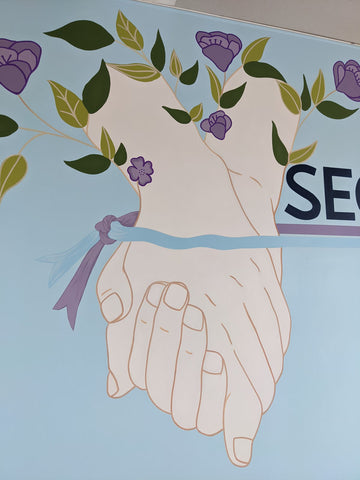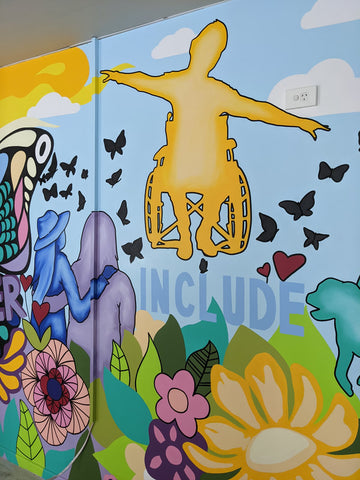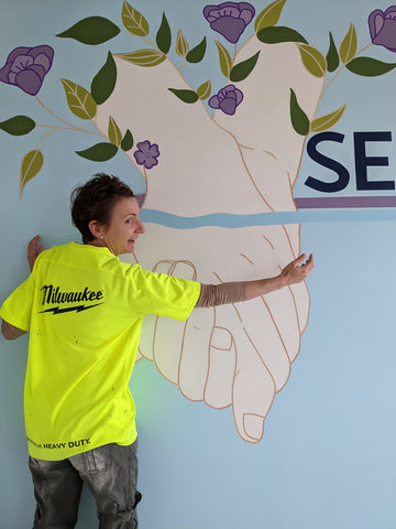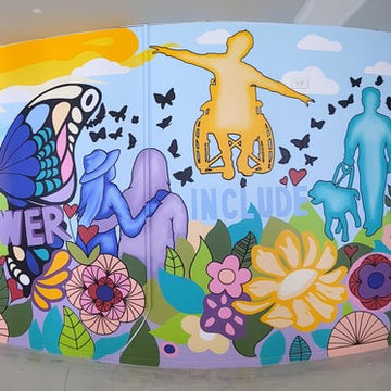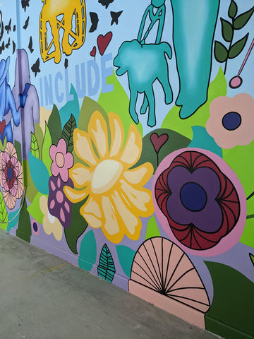The construction of the new Sequal headquarters at Strathpine called for some creative expression. The lovely staff got in contact as they had a vision for some colour across one wall of the space including reception. The whole space is predominately white which will make this even more of an impact. As it is a working space for all the staff at their desks, we wanted to create something positive and uplifting to work in, whilst also highlighting the important work Sequal do - SUPPORT, INCLUDE & IMPOWER.